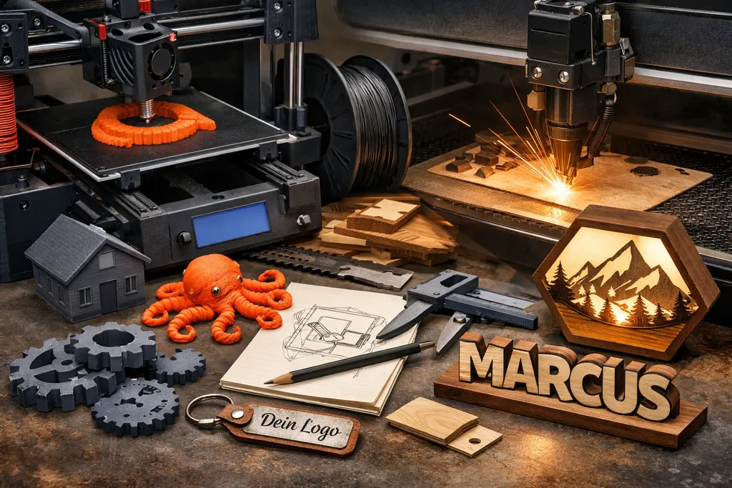 Funktionell a dekorativ 3D-Drocke no Wonsch, vum Eenzelstéck bis zu klenge Serien. Ideal fir Organisatioun, Ersatzdeeler oder individuell Designen.